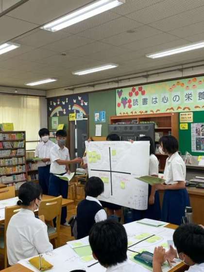 最後は話し合いを班でまとめ、発表です。