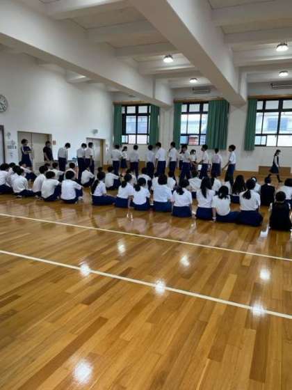 4日(月)今日も合唱コンクールに向けての練習をしています。2年生は全員でステージ入退場の動きを確認していました。それも大切ですね。3年生は教室での練習です。さすがに1年生と比べると声質が落ち着いていて魅力ある歌声です。まだまだ練習はできますのでいいハーモニーを作り上げてくださいね♪