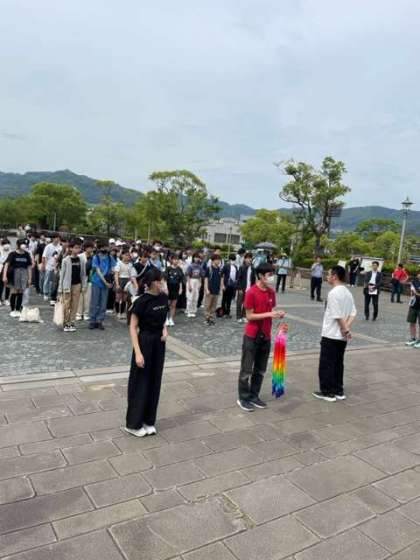セレモニーです。平和宣言と千羽鶴の奉納です。