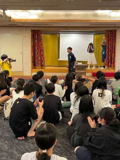 実行委員さんが準備してきたレクレーションが始まりました。まずは本日のお誕生日二人を祝福してのスタートです。