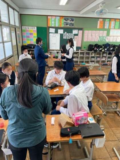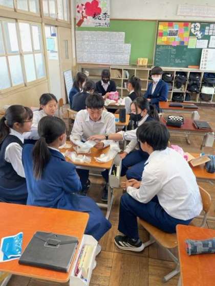 14日(水) 3年生が性に関する学習を行いました。養護教諭からの授業です。今回は体に関わることで月経についての学習や体験をしました。男子生徒も実際に生理用品を手に取っての実習です。