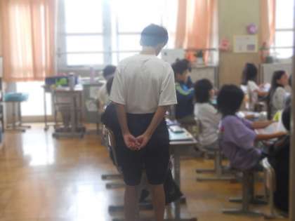 出身の小学校で先生のお手伝いを頑張っていました。