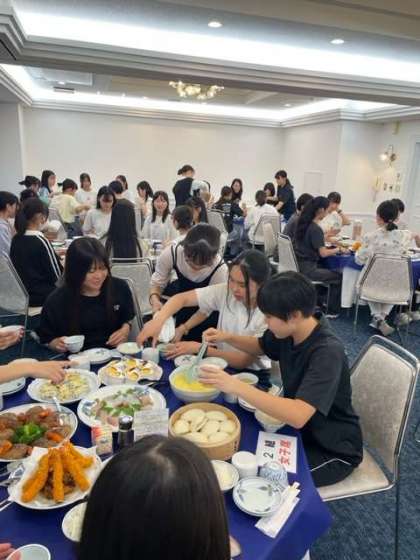 ホテルの夕食です。美味しそうな刺身もついてます。白米はおかわり自由です。これは中学生にはうれしい!