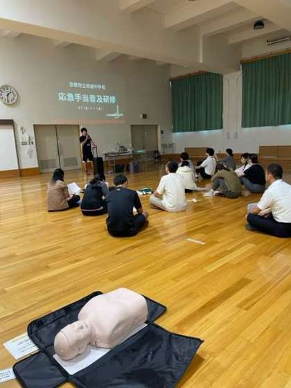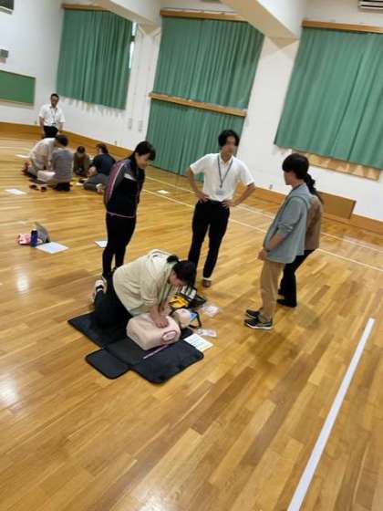 11日(水) 午後からは教職員の研修会を行いました。AEDの使用や実際の場面を想定し、役割りも設定したロールプレイングも行いました。