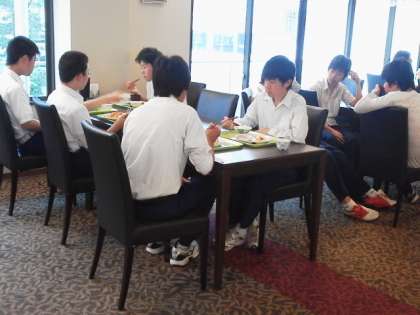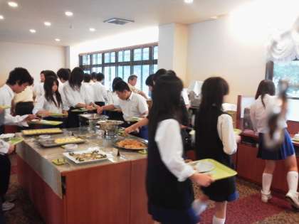 マリンスポーツが疲れたと見えて、全員朝まで熟睡して、先生が起こしに来なければ起きられないという状況でした。しかし、全員元気に バイキングでの朝食をとりました。