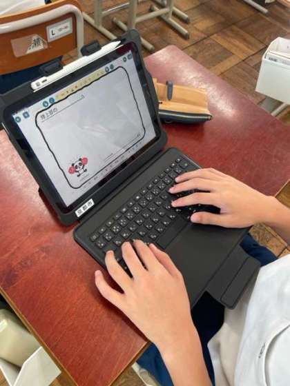 29日(金) 本校では全校道徳として先輩、後輩にメッセージを送りあう取組みを行なっています。今日は三年生が先行して活動しました。新しいiPadを使い、メッセージカードを作っています。ペン入力とキーボードを使い分けてやっていました。