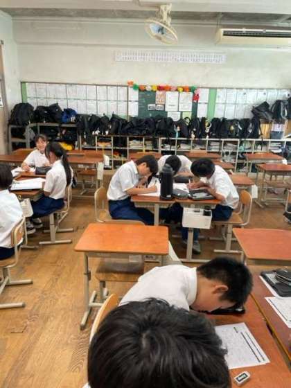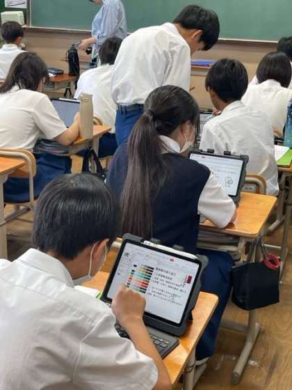 3日(水) 6時間目は総合的な学習の時間です。1年生はクラスを越えてゼミごとに集まり、小グループでテーマを話し合っていました。2年生はiPadで発表資料をまとめています。新しいiPadも使いこなしているようでした。