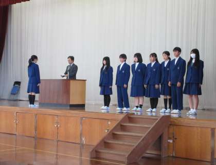 旧本部役員の皆さんの挨拶には感謝の気持ちがたくさん込められていました。表には出ていない裏方の大変な仕事もあったことでしょう。よく頑張ってくれました。新しい生徒会本部や学級役員さんにも期待をしています。何よりもみんなで学校を盛り上げていきましょう!