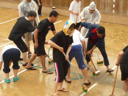 生徒完全下校後,教職員でプール清掃を行いました。例年の暑い中での作業とは違い,雨には濡れましたが,涼しく効率よく行えました。