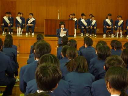生徒会本部役員選挙の立会演説会と投票がありました。立候補者と応援者代表が壇上でアピールを行いましたが,全員はきはきと考えを述べていました。