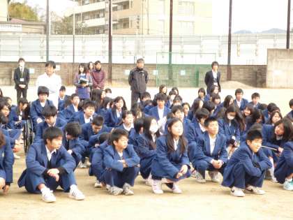 地震の揺れがくる前に、予想震度と揺れまでの秒数を校内放送で知らせる、緊急地震速報装置が本校に設置されました。本日はその機器を利用した防災・避難訓練を行いました。生徒には訓練の時間は知らせず、昼休みに行いましたので、今までの避難訓練と違って教職員のいない場所では自分たちの判断で行動することになり、多少戸惑いもありましたが、今後に活かしたいと思います。また地元の南浜消防分団のかたにもご講評をいただきました。