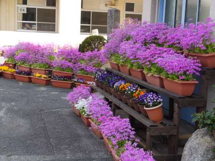 新年度がスタートしました。校内の桜は満開です。さくら草やビオラ,パンジーも最盛期をむかえています。