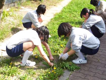 今年度第1回目のクリーンキャンペーンを行いました。代表専門委員会が行われている時間帯に,その会議に出ていない部活動部員により校内の草抜きや地域清掃を行いました。みんな元気よく,きびきびと動いていました。