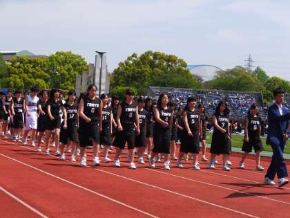 西京極陸上競技場で行われた開会式には91校7000人を越える選手が参加しました。桃陵中学校も堂々の行進でした。