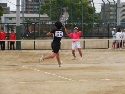 団体戦で大原中学校と対戦しましたが惜しくも敗れました。徐々に足も動きだし,ボレーもきまり,上達がうかがえました。新人戦の頃より思い切ったプレーができるようになりました。夏季大会が楽しみです。