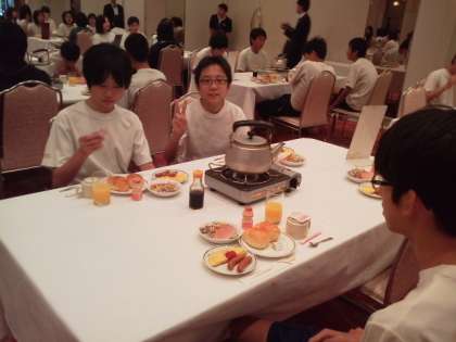 体調不良なし、全員とても元気で、本日も晴天です。昨夜はレクレーションが非常に盛り上がり、30分延長しました。就寝時刻後も、多少のおしゃべりはありましたが、許容範囲内でした。本日はこれからマリン体験です。