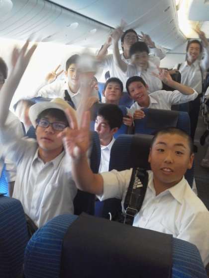 天候は曇り青空ものぞいています。全員元気に飛行機の旅を楽しみました。