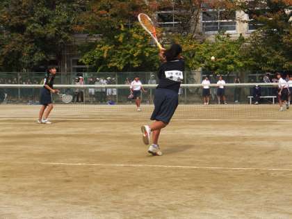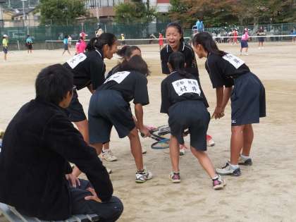 予選リーグ戦を勝ち抜いた女子ソフトテニス部の決勝トーナメントが10月25日(土)桂中学校で行われました。接戦の末,2対1で勝利し1回戦を見事突破しました。少々緊張気味でしたが,応援も元気があり,何より「勝つぞ」という気迫が感じられました。