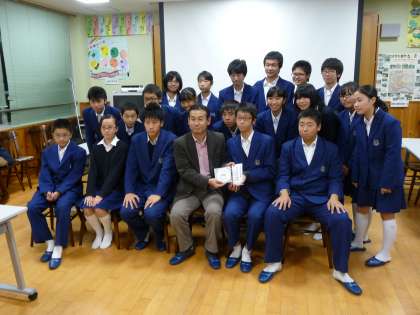 東日本大震災義援金を塩竃市中学校に手渡す