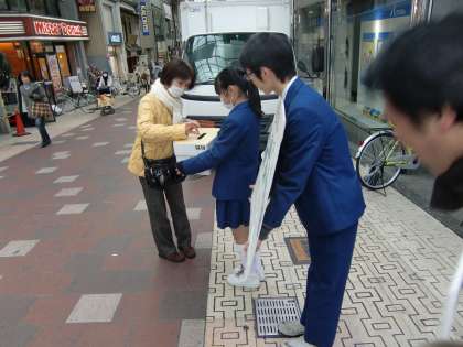 2月28日(土)東日本大震災義援金活動を大手筋商店街で行いました。宮城県塩竃市立浦戸小中学校にお渡しした義援金の使い方などについてのパネルも持ってご協力を呼びかけました。今回は47,042円のご協力をいただき,義援金活動開始からの合計は895,554円となりました。