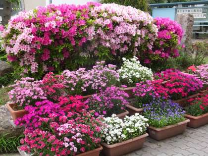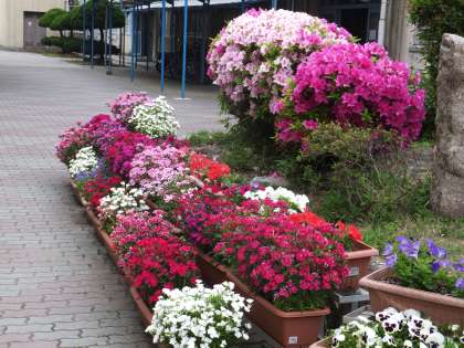 5月に入り,校門前のツツジが満開となり,ナデシコも長い冬の眠りから覚め,誇らしげに咲いています。