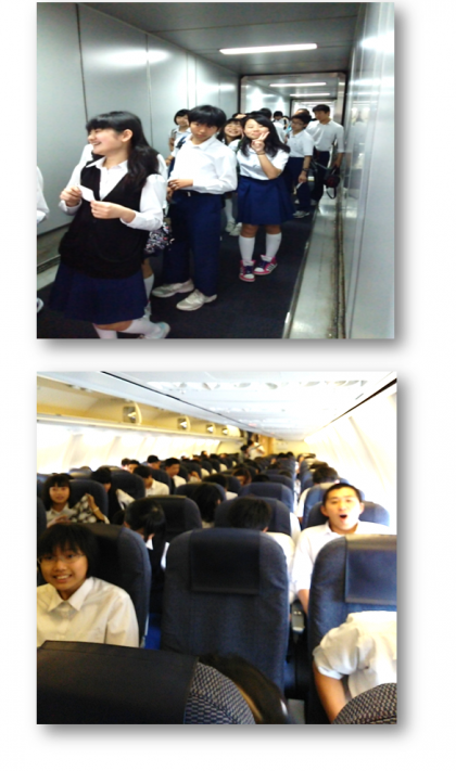 予定通り、10時30分機内に入りました。子どもたち、教員共気分はマックスです。