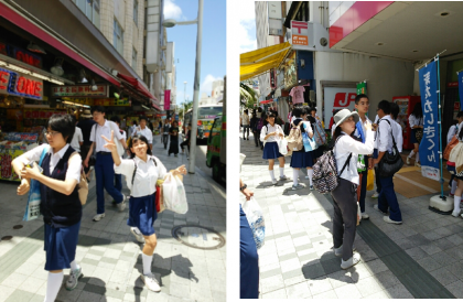 先生たちが声かけろしています「そろそろ集合」「12時00分ホテル集合ですよ」「遅れないように!!」「あーまだ、家の人にお土産買ってないよー」