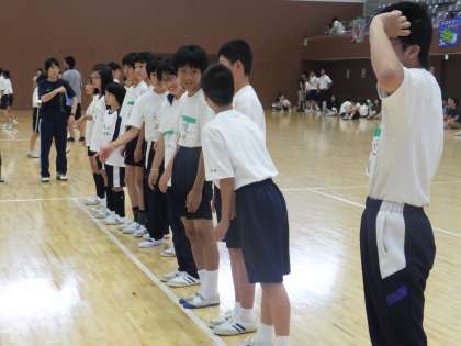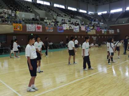 6月23日(火)島津アリーナで育成学級合同球技大会が行われ,本校3年生2名が開会式で選手宣誓を立派に行いました。バレーボールとドッジボールを他校と合同チームを作り,リーグ戦を行いました。ひとりでも多くの人と話をし,友達になろうを目標に楽しい一日を過ごしました。