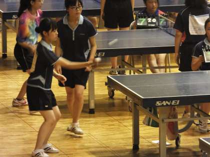 男子と同時並行で行われ,ダブルスでは逆転の勝利をおさめましたが,初戦敗退となりました。粘り強く,あきらめることなく戦いました。チームメートのアドバイスを真剣に聞き,励まし合いながらチーム一丸となって前向きに試合ができたことは素晴らしいことです。後は1・2年生が卓球部良い伝統を引き継いでくれることでしょう。