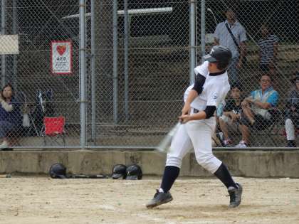 7月16日(土)横大路グラウンドで1回戦を行いました。2本のホームランを放ち,おもいっきりのいいスイングで堂々と戦いましたが,2対6で敗れました。3年生最後の試合となりましたが,悔いの残らない一生懸命のプレーで締めくくってくれました。秋からはまた合同チームとなりますが,繋いでくれた3年生のためにも頑張ってほしいと思います。また大勢の保護者のみなさまの応援ありがとうございました。子どもたちは心強勝ったと思います。
