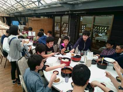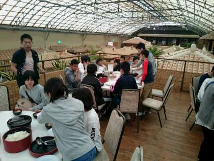 昼食会場 琉球村に着きました。これからお昼ご飯をいただきます。