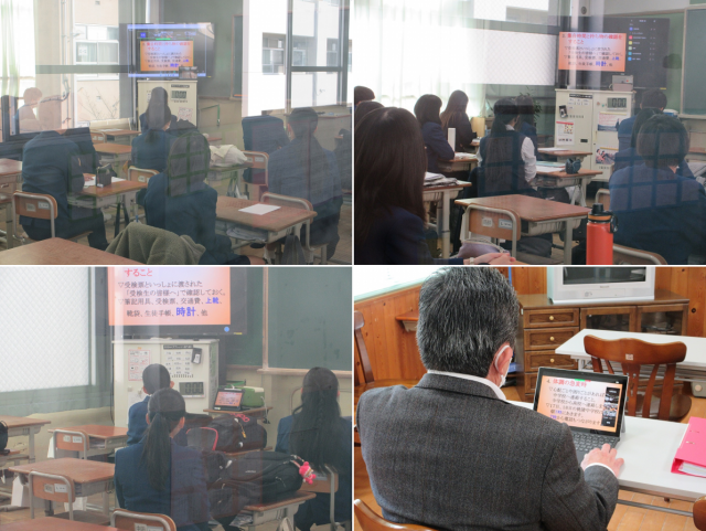 6限に公立前期選抜事前指導をオンラインで行いました。来週に行われる公立高校の前期選抜に向けて、受検を控える3年生が真剣な表情で注意事項等を聞いていました。残された時間を計画的に活用して、本番に備えてください。頑張れ、桃陵中3年生!