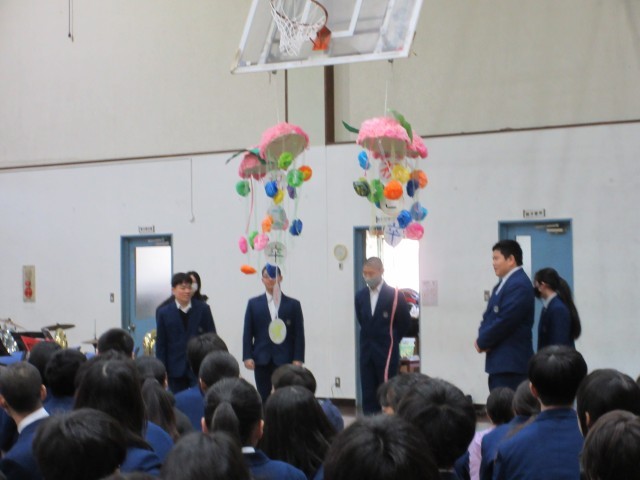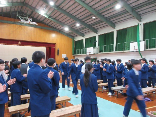 11日(水) 午前中に3年生を送る会が行われました。全校生徒で集まるのがこれで最後です。今までの3年生への感謝やお礼がいっぱい詰まったいい送る会になりました。3年生からも素敵な合唱があり、感動の嵐でした。