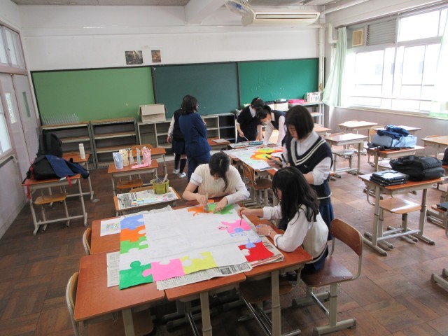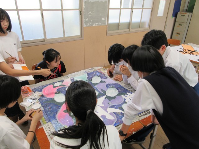 28日(火)今日も放課後に学級旗製作をやってくれています。着色も進み、全体像が見えてきました。