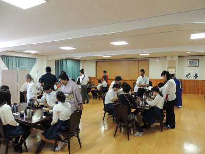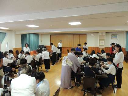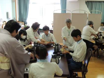 お茶に込める思いやりやおもてなしの心を感じとり,伝統を難しい,堅苦しい,自分とは関係ないととらえず,楽しく体験する中で,伝統の中に受け継がれてきた「相手を思いやる心」に気づき,継承していく心情を養うことを目的とし,毎年開催しております。