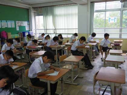 8日の午前に各学年で「向島単語検定」の再検定がありました。みんな一生懸命取り組んでいました。常に向上心を持って,学習に取り組んでほしいと思います。