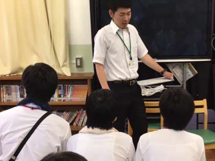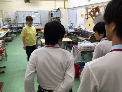 10日(月)の午前に,6組の3年3名は,呉竹総合支援学校に学校見学会に出かけました。施設見学や学校説明を担当の先生方から熱心に聞いていました。