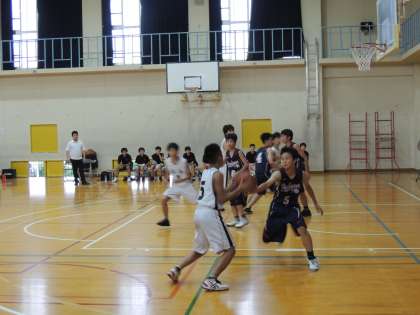 17日(祝)に七条中学校で行われた2回戦で東山中学校と対戦し,残念ながら47対81で敗退しました。しかし,最後まであきらめずにゴールを目指す姿は,素晴らしいものでした。よく頑張りました。この経験を,ぜひとも次にいかしてほしいと思います。