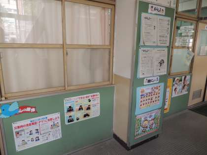 今月の掲示物のテーマは「応急手当」です。応急処置時に必要な4つの処置は,Rest(安静)・Ice(アイス)・Compression(圧迫)・Elevation(挙上)であり,その頭文字をとり「RICE処置」と呼びます。常に色々な場面,場所で考えて行動できるようにしてください。