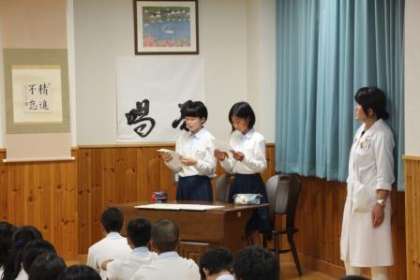 本日8日(金)に2年生は総合学習発表会に向けての練習が行われました。6月に行われた「チャレンジ体験」を自分たちで調べた内容をまとめて発表します。来月の発表会が楽しみです。