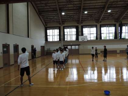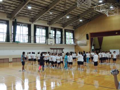 本日から10月5日(木)の体育大会に向けての学年別練習が始まりました。1・2限の2年生の練習は,雨天のため体育館で行いました。団体種目である「大縄跳び」の練習をクラスごと一生懸命練習していました。