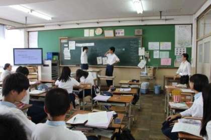 本日4限,2年英語科において教育実習生の研究授業が行われました。本時の目標は「May I speak to〜,please?を用いて、自分に関連することで電話上での会話ができる。」です。生徒たちはお互いにペアワークで交流しながら自分なりの考えをしっかりまとめ,発表することができました。