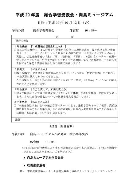 なお「総合学習発表会・向島ミュージアム」のタイムテーブルにつきましては,ページ右下の配布文書または以下のリンクをクリックしてご覧ください。