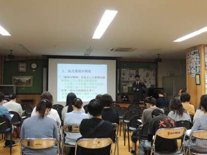 本日10日(火),進路保護者会を会議室で開催させていただきました。京都府立洛水高校と京都精華学園高等学校に来ていただき,公立学校や私立学校の違いなどや学費助成制度などについて説明いただきました。いよいよ3年生は,自分たちの進路に向けて大切な時期に入ってきます。情報をしっかり聞き,進路に向けて頑張ってください!