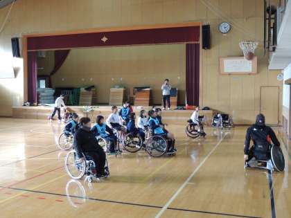 本日6日(水)午後から,各学年で人権学習を行いました。1年は「身の回りの差別と人権」で障がい者問題について学びました。車いすバスケットボール選手や車いすラグビー選手3名に来ていただき,講話や実際に車いすに乗っての試合なども経験させていただきました。