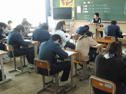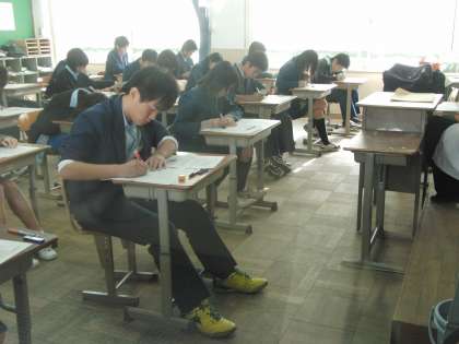 総括考査2日目、音楽・社会・技術家庭の3教科が実施された。いよいよ明日が最終日、保健体育・英語・数学が行われる。「一寸の光陰軽んずべからず」時間を無駄にせず最後の最後までしっかり頑張ってほしい。