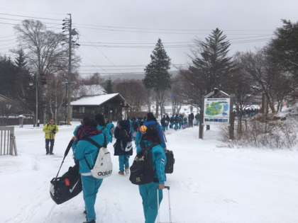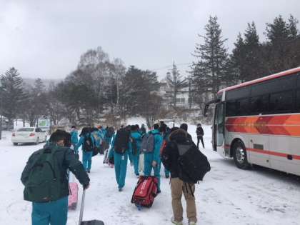 予定通り,12時00分に白樺高原ホテルに到着しました。天候は雪が降っているようです。