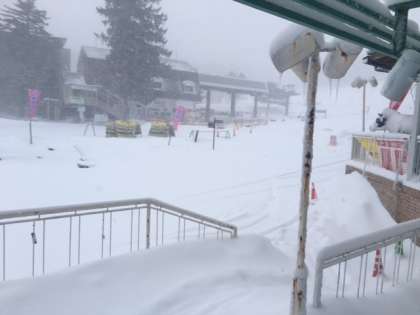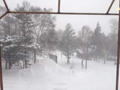 天候は雪です。昨日から降っている様子で,さらに積もっています。
