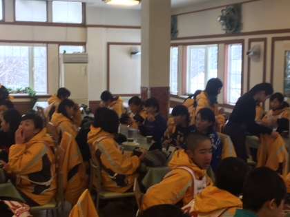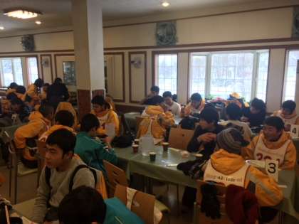 昼食の様子です。午後のスキー講習は,13時からとなります。