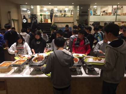 入浴を済ませ,夕食を取っています。夕食後は,19時よりレクレーションを予定しています。